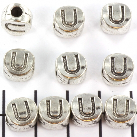 metalen alfabet letter kraal - zilver U