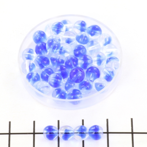 Deze kralen zijn half om half gekleurd. De ene helft is blauw, de andere helft is transparant.