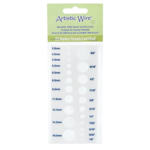 Met deze draw plate kan je de dikte van gevlochten of gebreide draad verkleinen door de draad door een steeds kleiner gat te halen.