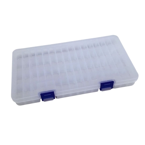 Handige bewaardoos voor je kralen en bedels. Er zitten 60 vakjes in de doos, welke verstelbaar zijn, de tussenschotjes kun je eruit halen. Ideaal voor bijvoorbeeld slotjes, bedeltjes, etc. Wees alleen wel voorzichtig met hele kleine kralen zoals Miyuki rocailles: doordat de tussenschotjes niet vast zitten loop je risico dat de kralen onder het tussenschotje doorschuiven.