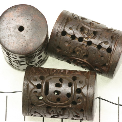 De kraal is gemaakt van koeienbot. De tekening is met de hand gesneden.