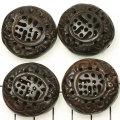 De kraal is gemaakt van koeienbot. De tekening is met de hand gesneden. De voor- en achterkant zijn hetzelfde.