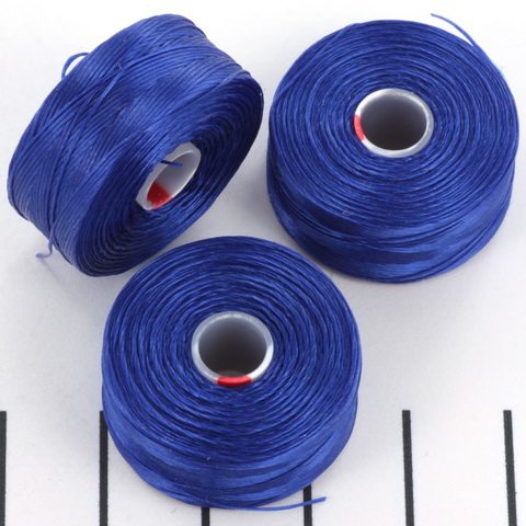 Dit synthetische rijggaren is verpakt op een klosje per 78 yard / 71 meter en een vol klosje heeft een grootte van 24 x 12 mm. Rijggaren heb je in verschillende diktes, waarbij AA het dunst is, te vinden met productnummer: DR-CLBAA en het rijggaren dat je hier ziet, is dikte D. Deze rijggaren is vrijwel identiek met nymo thread size D, die niet meer geproduceerd wordt.