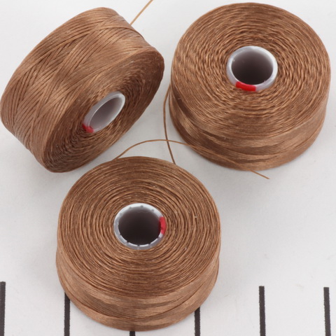 Dit rijggaren is 0.11 mm dik, heel soepel en stevig. Kies voor dit draad een naald die niet dunner is dan #11, omdat je anders moeite kunt hebben om het draad door het oogje te krijgen.
