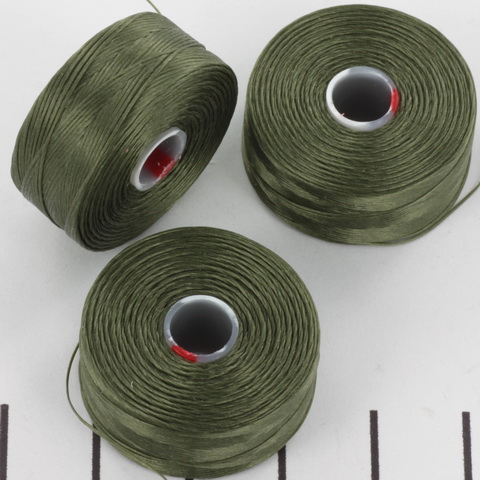 Dit rijggaren is 0.11 mm dik, heel soepel en stevig. Kies voor dit draad een naald die niet dunner is dan #11, omdat je anders moeite kunt hebben om het draad door het oogje te krijgen.