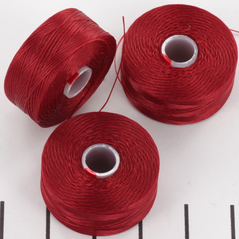 Dit rijggaren is 0.11 mm dik, heel soepel en stevig. Kies voor dit draad een naald die niet dunner is dan #11, omdat je anders moeite kunt hebben om het draad door het oogje te krijgen.