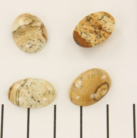 Prachtige kwaliteit (half)edelstenen cabochons met een hele mooie glans, welke zeker geen imitatie zijn. De cabochon op de foto is een voorbeeld van wat je ongeveer kunt verwachten. Aangezien ze allemaal een eigen tekening hebben, geldt de cab op de foto slechts als indicatie. De hoogte van de stenen varieert van ongeveer van 4 tot 5 mm.