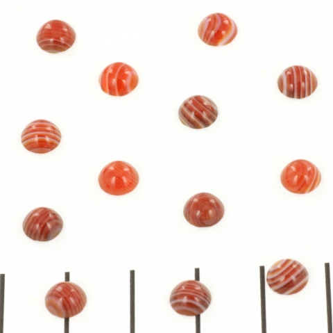 Prachtige kwaliteit (half)edelstenen cabochons met een hele mooie glans, welke zeker geen imitatie zijn. De cabochon op de foto is een voorbeeld van wat je ongeveer kunt verwachten. Aangezien ze allemaal een eigen tekening hebben, geldt de cab op de foto slechts als indicatie. De hoogte van de stenen varieert van ongeveer van 2.5 tot 3.5 mm.