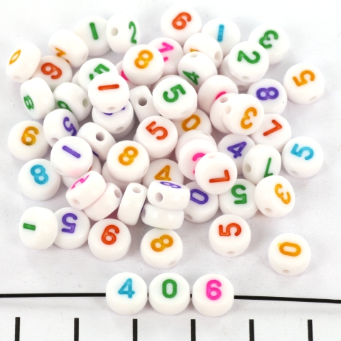 DQ cijferkraal plat rond - wit met mix 7 mm