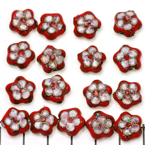 Cloisonné kralen werden in de middeleeuwen in China geintroduceerd. De kralen bestaan uit een metalen kern, met daaromheeen glas. De kralen zijn versierd met bloemen en blaadjes met daaromheen mooie, goudkleurige randjes. Ondanks de metalen kern zijn de kralen heel licht. Ze zijn namelijk hol van binnen.