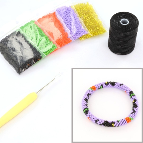 Met dit pakket kun je zelf een superleuke bangle maken door deze te haken met 11/0 rocailles. Je ontvangt de kleuren die in dit pakket zitten, samen met de kleur rijgkoord (0.3 mm dik) dat er goed bij past. Zo hoef je zelf niet meer uit te zoeken wat je ervoor nodig hebt en heb je geen twijfel over de kleuren.