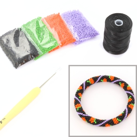 DIY kit armband haken met 11/0 - halloween pompoenen