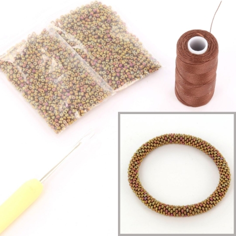 DIY kit armband haken met 11/0 - metallic iris batik gold