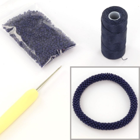 DIY kit armband haken met 11/0 - navy blue