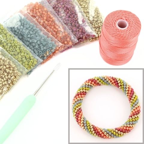 Met dit pakket kun je zelf een superleuke bangle maken door deze te haken met 8/0 rocailles. Je ontvangt de kleuren die in dit pakket zitten, samen met de kleur rijgkoord (0.5 mm dik) dat er goed bij past. Zo hoef je zelf niet meer uit te zoeken wat je ervoor nodig hebt en heb je geen twijfel over de kleuren.