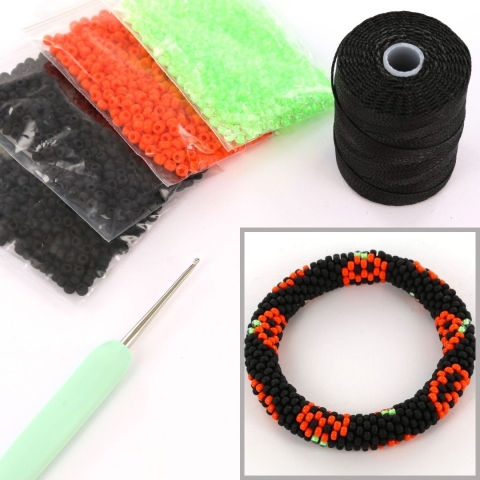 DIY kit armband haken met 8/0 - halloween pompoen