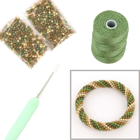 Met dit pakket kun je zelf een superleuke bangle maken door deze te haken met 8/0 rocailles. Je ontvangt de kleuren die in dit pakket zitten, samen met de kleur rijgkoord (0.5 mm dik) dat er goed bij past. Zo hoef je zelf niet meer uit te zoeken wat je ervoor nodig hebt en heb je geen twijfel over de kleuren. In dit pakket zitten genoeg kralen om 2 armbanden te maken.