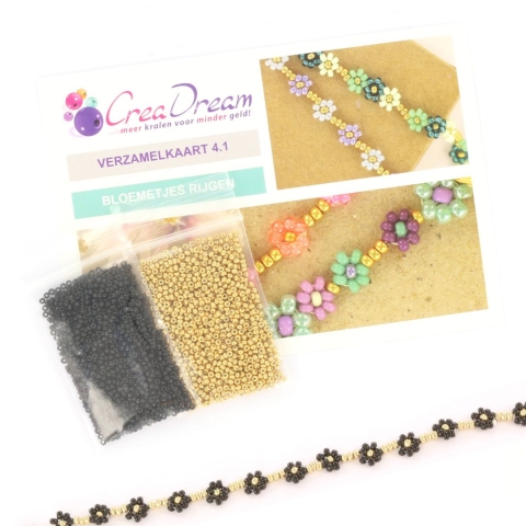 Rijg deze prachtige bloemetjesarmband met behulp van de instructies op het verzamelkaartje. De kleuren zijn al zorgvuldig voor je samengesteld. Je kunt de armband rijgen met elastiek en vervolgens vastknopen, maar voor een meer verfijnde afwerking kun je ook kiezen voor een karabijnsluiting. Hiervoor is het aan te raden om Fireline te gebruiken, aangezien dit materiaal bijzonder sterk is. De benodigde artikelen staan hieronder vermeld en kunnen apart besteld worden als je ze nog niet in huis hebt.