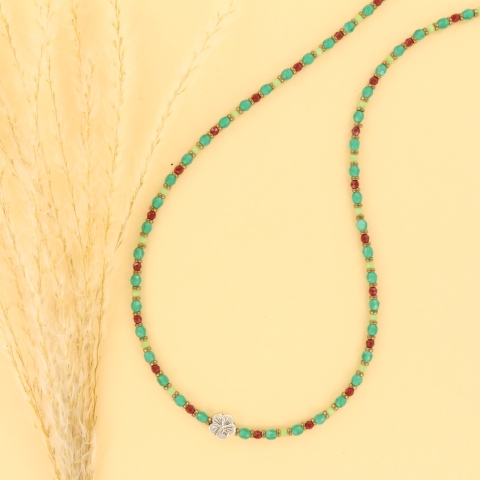 DIY pakket - ketting tsjechisch facet met spacers groen rood