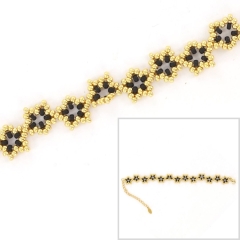 Setje voor DIY sterren armbandjes. Er zitten 2 zakjes(1x goud 1x zwart) Miyuki rocailles en materialen voor een bijpassend stainless steel slotje te maken zoals 4x karabijnen, 4x verlengkettingen en 2 gram open ringen.