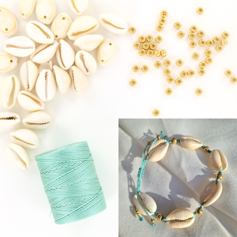 Met dit zomerse DIY-pakketje kun je super leuke schelp armbandjes of enkelbandjes maken! Compleet met schelpkralen, fleurig rijgkoord en gouden miyuki rocailles.