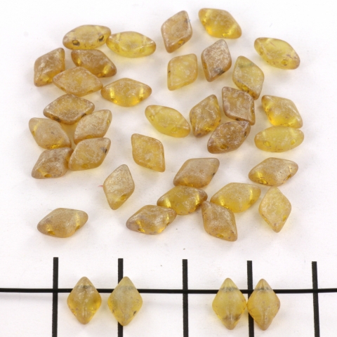 De gemduo is een Tsjechische glaskraal van van 5 mm breed en 8 mm hoog met een dikte van 3.5 mm. Deze ruitvormige kraal beschikt over twee gaten. De unieke vorm en rechte lijnen zorgen er voor dat deze kralen goed op elkaar aansluiten.