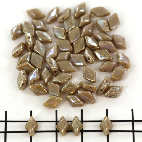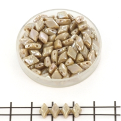 De gemduo is een Tsjechische glaskraal van van 5 mm breed en 8 mm hoog met een dikte van 3.5 mm. Deze ruitvormige kraal beschikt over twee gaten. De unieke vorm en rechte lijnen zorgen er voor dat deze kralen goed op elkaar aansluiten.