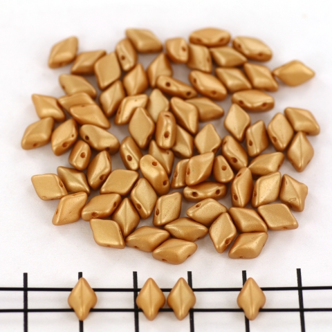 De gemduo is een Tsjechische glaskraal van van 5 mm breed en 8 mm hoog met een dikte van 3.5 mm. Deze ruitvormige kraal beschikt over twee gaten. De unieke vorm en rechte lijnen zorgen er voor dat deze kralen goed op elkaar aansluiten.