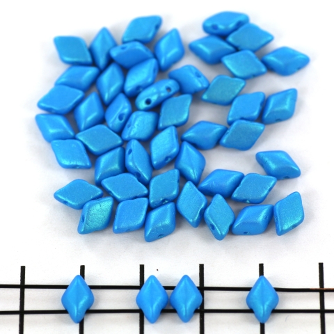 De gemduo is een Tsjechische glaskraal van van 5 mm breed en 8 mm hoog met een dikte van 3.5 mm. Deze ruitvormige kraal beschikt over twee gaten. De unieke vorm en rechte lijnen zorgen er voor dat deze kralen goed op elkaar aansluiten.