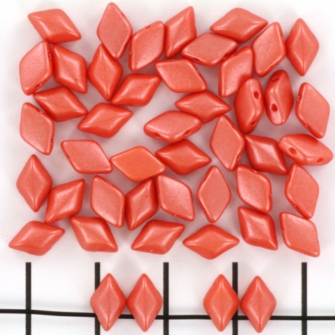 De gemduo is een Tsjechische glaskraal van van 5 mm breed en 8 mm hoog met een dikte van 3.5 mm. Deze ruitvormige kraal beschikt over twee gaten. De unieke vorm en rechte lijnen zorgen er voor dat deze kralen goed op elkaar aansluiten.