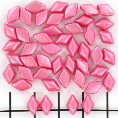 De gemduo is een Tsjechische glaskraal van van 5 mm breed en 8 mm hoog met een dikte van 3.5 mm. Deze ruitvormige kraal beschikt over twee gaten. De unieke vorm en rechte lijnen zorgen er voor dat deze kralen goed op elkaar aansluiten.