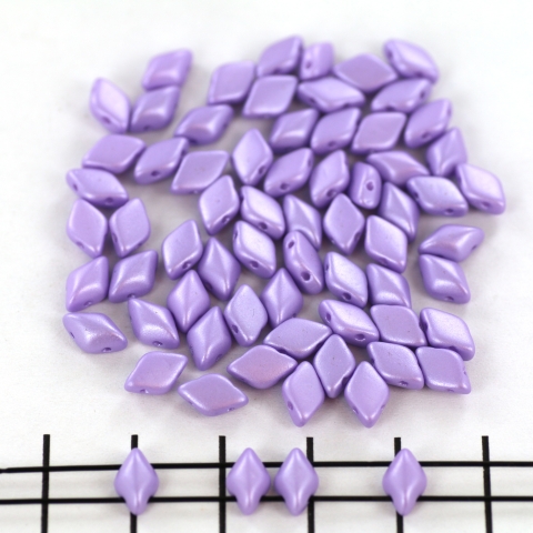 De gemduo is een Tsjechische glaskraal van van 5 mm breed en 8 mm hoog met een dikte van 3.5 mm. Deze ruitvormige kraal beschikt over twee gaten. De unieke vorm en rechte lijnen zorgen er voor dat deze kralen goed op elkaar aansluiten.