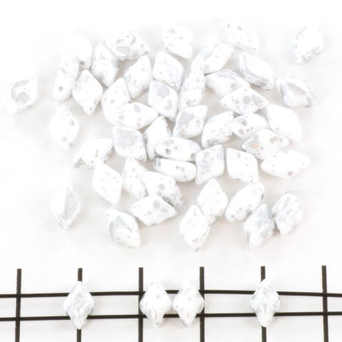 De gemduo is een Tsjechische glaskraal van van 5 mm breed en 8 mm hoog met een dikte van 3.5 mm. Deze ruitvormige kraal beschikt over twee gaten. De unieke vorm en rechte lijnen zorgen er voor dat deze kralen goed op elkaar aansluiten.