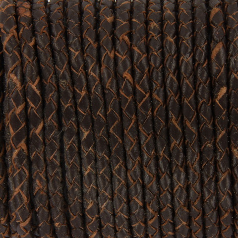 gevlochten leer 3 mm - donkerbruin met bruine rand