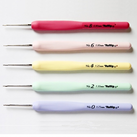 Een zeer goede kwaliteit haaknaalden in verschillende diktes te bestellen, namelijk 1.75mm, 1.50mm, 1.25mm, 1.00mm en 0.90mm. De zachte handgreep ligt prettig in de hand en glijdt niet makkelijk weg. De punt is glad afgewerkt en glijdt soepeltjes langs de draden. Deze haaknaalden zijn speciaal voor het rond haken met rocailles.