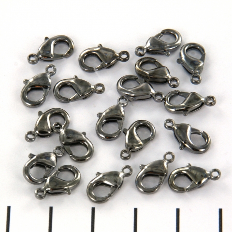 Mooie antraciet kleurige karabijn slotjes. Het kan bij deze slotjes voorkomen dat er een aantal vlekjes op zitten. Op te foto is goed te zien hoe dit eruit ziet. We hebben hierdoor de prijs verlaagd.