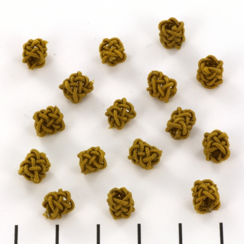 Schattige kraaltjes die gemaakt zijn van stevig stoffen dat in een kraalvorm geknoopt is. De kraal blijft heel mooi in de vorm staan en kan goed naast elkaar geregen worden, waarbij ze mooi op hun plek blijven zitten. De kraaltjes hebben een wat groter rijggat van 2,8mm. Deze kraaltjes hebben we in cilindervorm (KR-2502) en de wat kleinere ronde vorm (KR-2503).