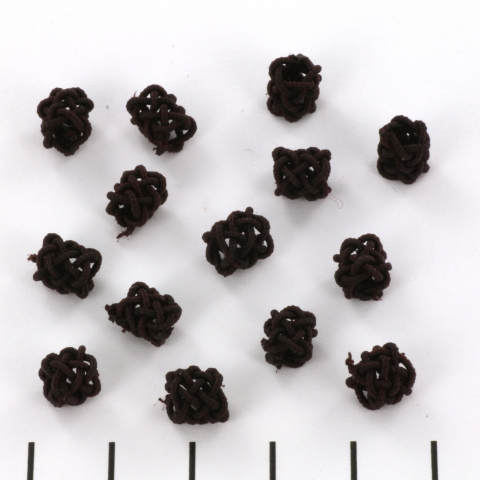 Schattige kraaltjes die gemaakt zijn van stevig stoffen dat in een kraalvorm geknoopt is. De kraal blijft heel mooi in de vorm staan en kan goed naast elkaar geregen worden, waarbij ze mooi op hun plek blijven zitten. De kraaltjes hebben een wat groter rijggat van 2,8mm. Deze kraaltjes hebben we in cilindervorm (KR-2502) en de wat kleinere ronde vorm (KR-2503).