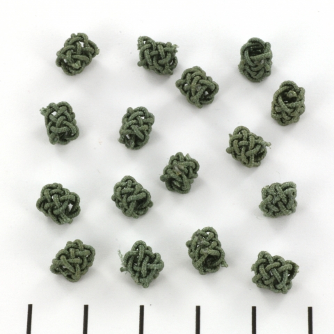 Schattige kraaltjes die gemaakt zijn van stevig stoffen dat in een kraalvorm geknoopt is. De kraal blijft heel mooi in de vorm staan en kan goed naast elkaar geregen worden, waarbij ze mooi op hun plek blijven zitten. De kraaltjes hebben een wat groter rijggat van 2,8mm. Deze kraaltjes hebben we in cilindervorm (KR-2502) en de wat kleinere ronde vorm (KR-2503).