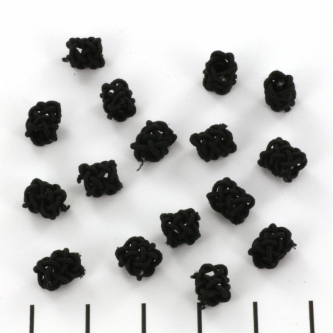 Schattige kraaltjes die gemaakt zijn van stevig stoffen dat in een kraalvorm geknoopt is. De kraal blijft heel mooi in de vorm staan en kan goed naast elkaar geregen worden, waarbij ze mooi op hun plek blijven zitten. De kraaltjes hebben een wat groter rijggat van 2,8mm. Deze kraaltjes hebben we in cilindervorm (KR-2502) en de wat kleinere ronde vorm (KR-2503).