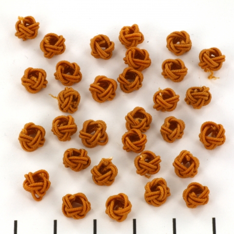 Schattige kraaltjes die gemaakt zijn van stevige koorden dat in een kraalvorm geknoopt is. De kraal blijft heel mooi in de vorm staan en kan goed naast elkaar geregen worden, waarbij ze mooi op hun plek blijven zitten. De kraaltjes hebben een wat groter rijggat van 2,8mm. Deze kraaltjes hebben we in cilindervorm (KR-2502) en de wat kleinere ronde vorm (KR-2503).