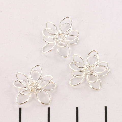 Mooie metalen kralenkappen, in een bloem-vorm gemaakt van wire. Het rijggat varieert, afhankelijk van hoe de bloem in elkaar is gedraaid. Als het nodig is, kun je dit zelf nog aanpassen aan waar je het op wilt rijgen.
