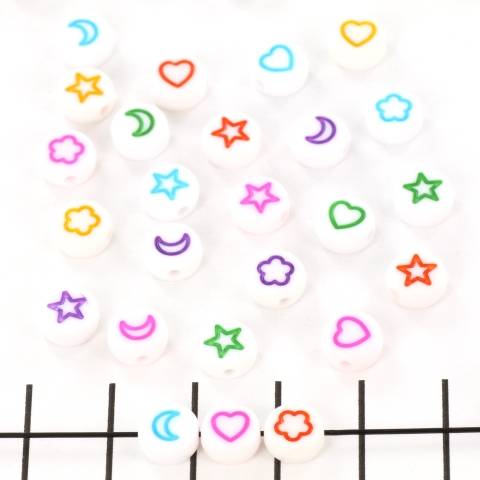kunststof kralen plat rond - felgekleurde symbolen 7 mm