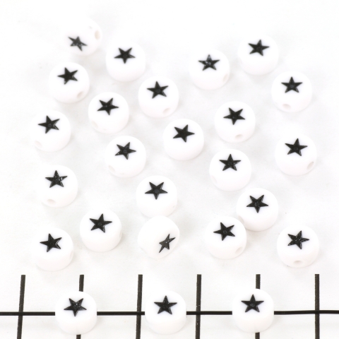 Kunststof kralen plat rond zwart wit emoji 7 mm