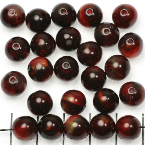kunststof natuurstenen rond 10 mm - rood met goudkleurige glans