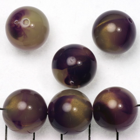 kunststof natuurstenen rond 15 mm - paars met goudkleurige glans