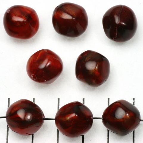 kunststof natuurstenen rondig 15 mm - rood met goudkleurige glans