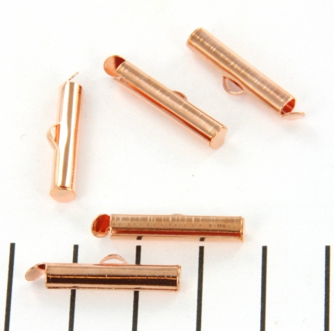 Deze schuifklemmetjes zijn oorspronkelijk bedoeld voor ball chain. Je kan het erin schuiven en dan mooi dicht buigen. Het wordt tegenwoordig ook veel gebruikt voor geweven armbanden. Prijs is per 2 stuks.