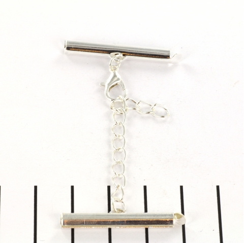 metalen klemmetje met slotje en verlengketting - lichtzilver 28 mm