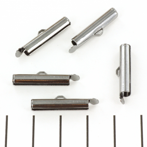 Deze schuifklemmetjes zijn oorspronkelijk bedoeld voor ball chain. Je kan het erin schuiven en dan mooi dicht buigen. Het wordt tegenwoordig ook veel gebruikt voor geweven armbanden. Prijs is per 2 stuks.